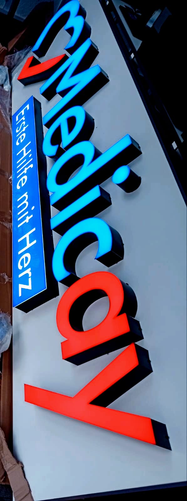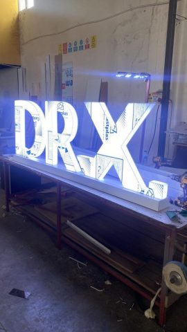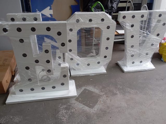 Leuchtbuchstaben aus Vollacryl mit Front- und Seitenbeleuchtung.