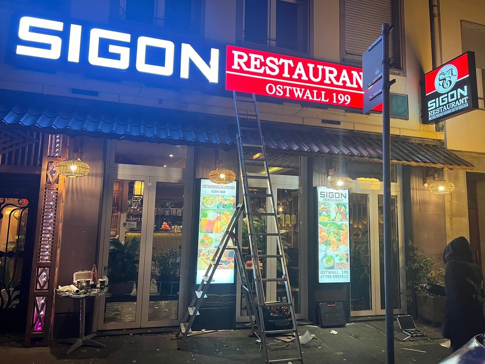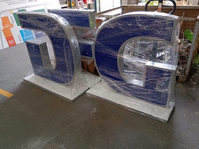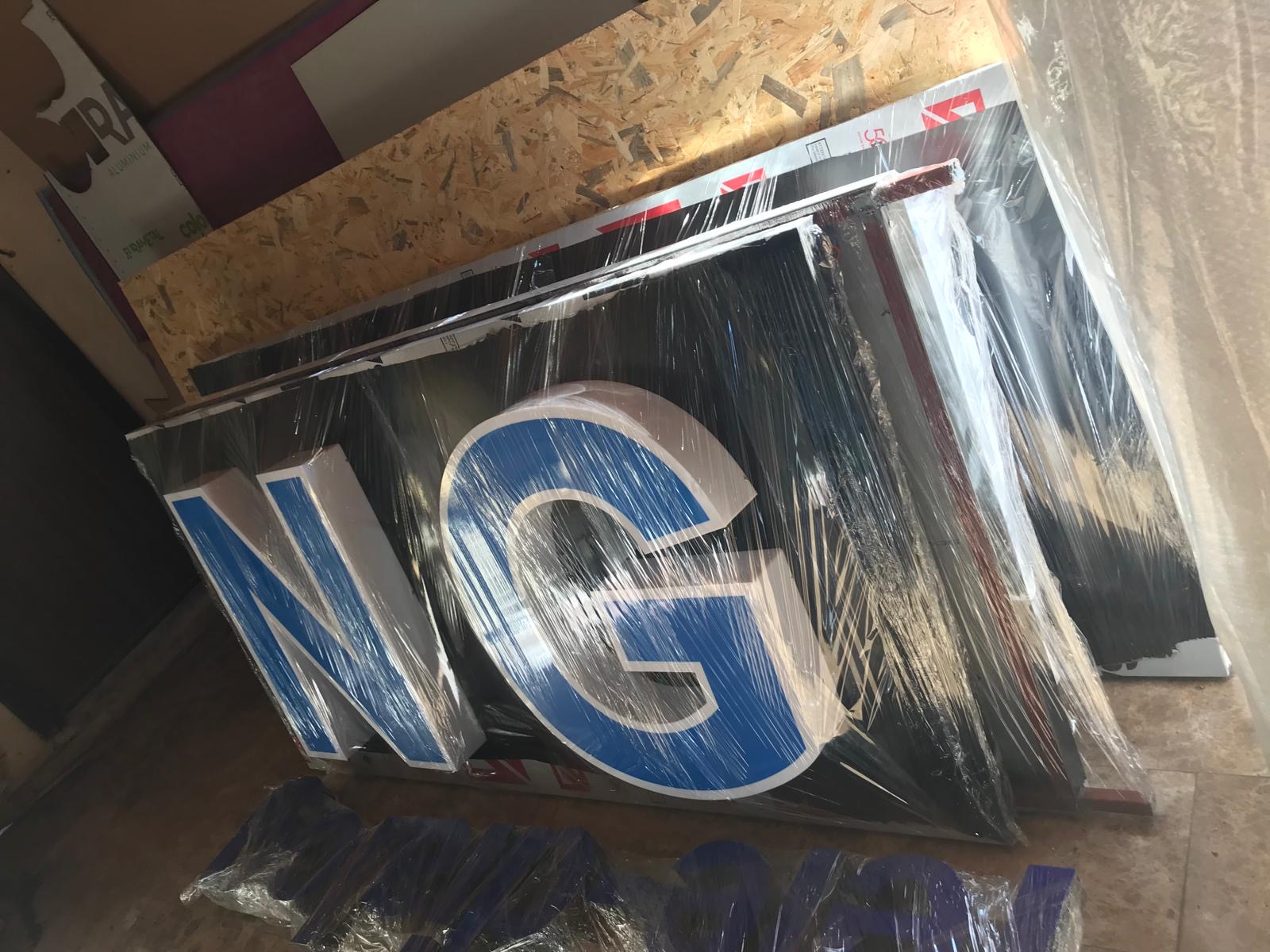 Wir montieren Ihre Leuchtbuchstaben und Logos auf Wunsch auf Stangen oder Alu-Dibond-Platten und verkabeln alle Leuchtelemente inklusive Trafoeinheiten.